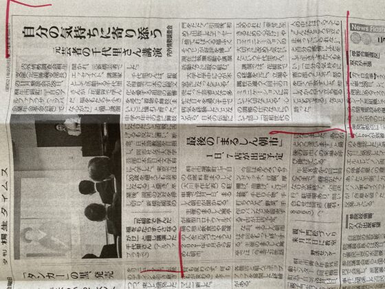 鳥取県米子市でお招きいただいた講演のことを 日本海新聞で掲載していただきました。 米子の方は楽しい方が多く 食べ物もお酒も美味しくて、 大好きな場所になりました! 翌日は、境港の水木しげるロードに行きました。 本当に楽し […]
